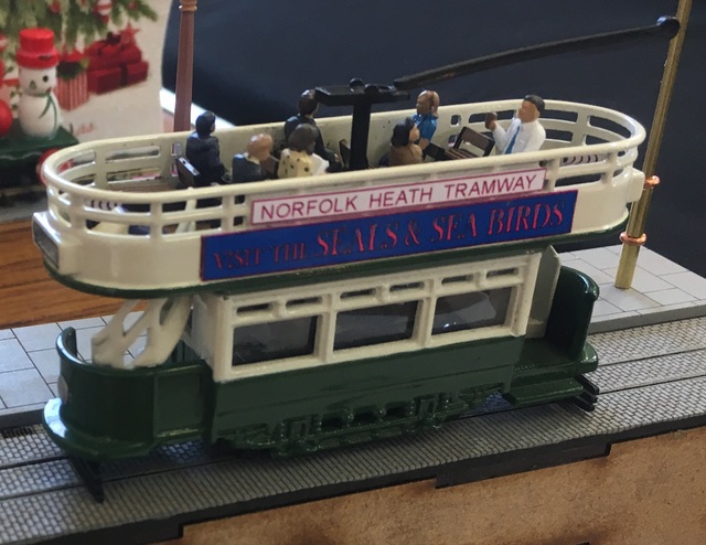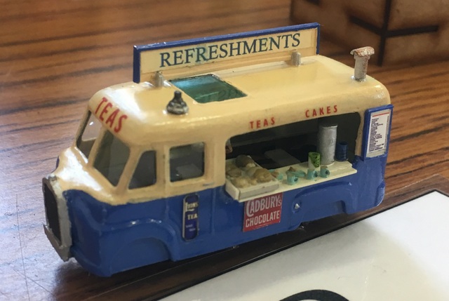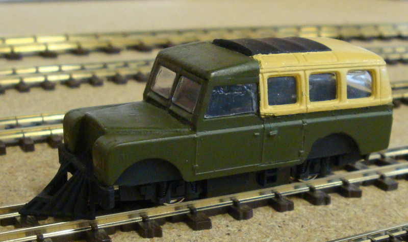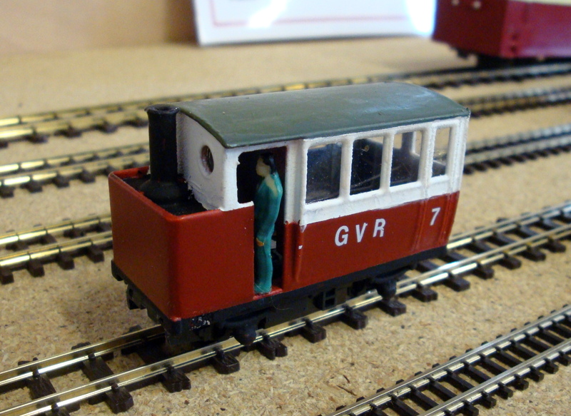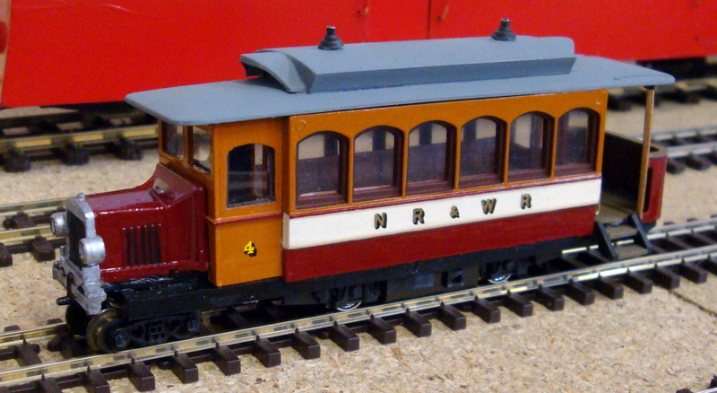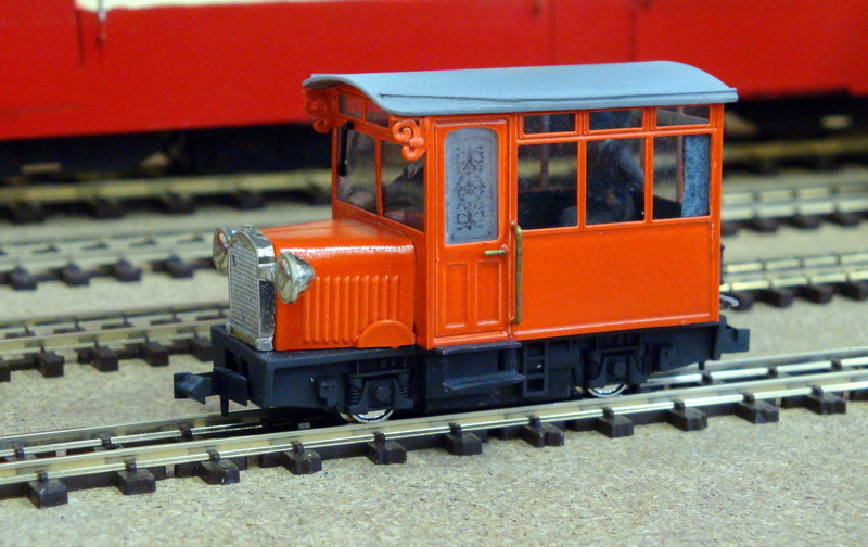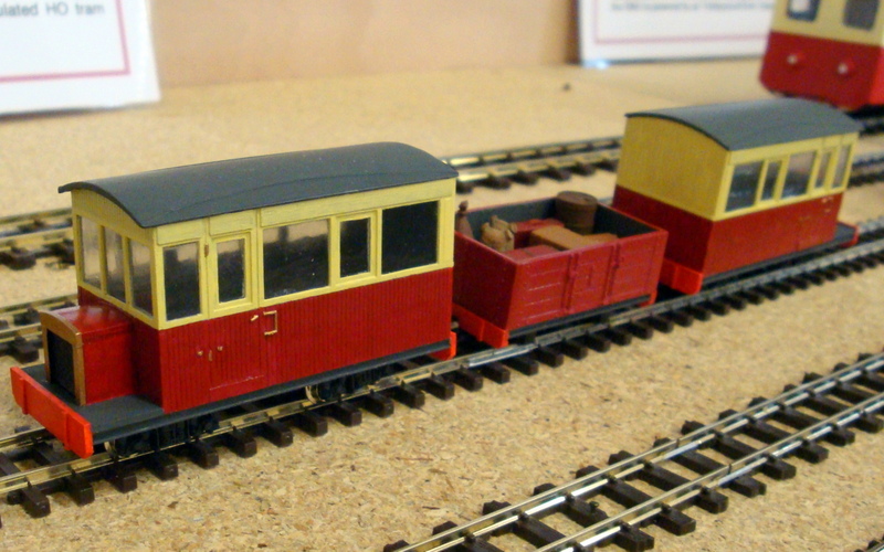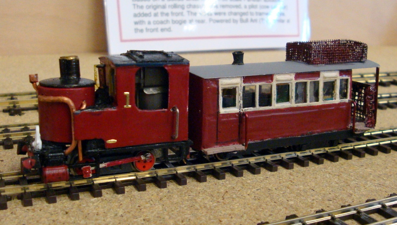 Graham used a 1960’s Matchbox Lesney TV service van to build a refreshment van completely fitted out. Stuart made a Seaton Tramway scale tram, Mike used a Lledo bus body to make workmans transport and Chris used a 7mm scale tractor to build a locomotive partly inspired by an original conversion by R. Hudson of Leeds, the rear tractor wheels form a wagon load. Richard used an Oxford Commer Lyons Ice Cream van and converted it to a track maintenance van. All run on Kato 103 chassis except the tack maintenance van which uses a Caramel Motor bogie