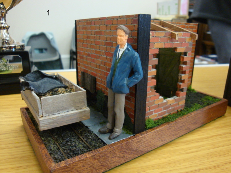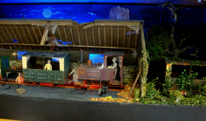 In 2017 the rules were to “Build a narrow gauge rail-served building with a visible full interior”. For different reasons only three entries were received this year, Stuart presented a Gn15 scratch built garden building inspired by the village of Abergynolwyn where a line was used to carry away the “night soil” in wagons from the end of the gardens. Graham built a decaying 009 train shed/workshop including lighting effects with a rusty train gathering cobwebs while at night the “un-dead” play around on the train. Jim built a carriage repair workshop in 009 scale complete with all personnel and machinery, lathes, drills, stoves and office etc.