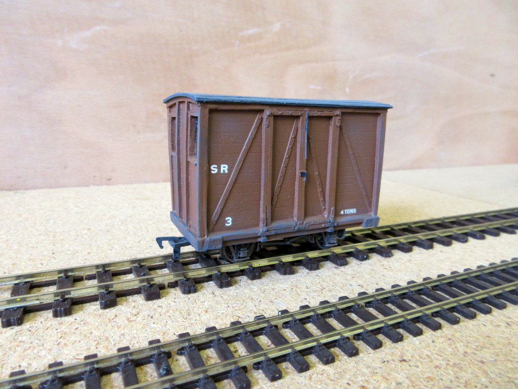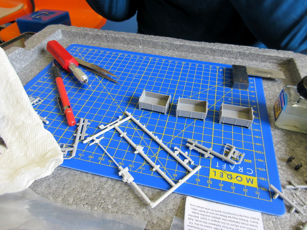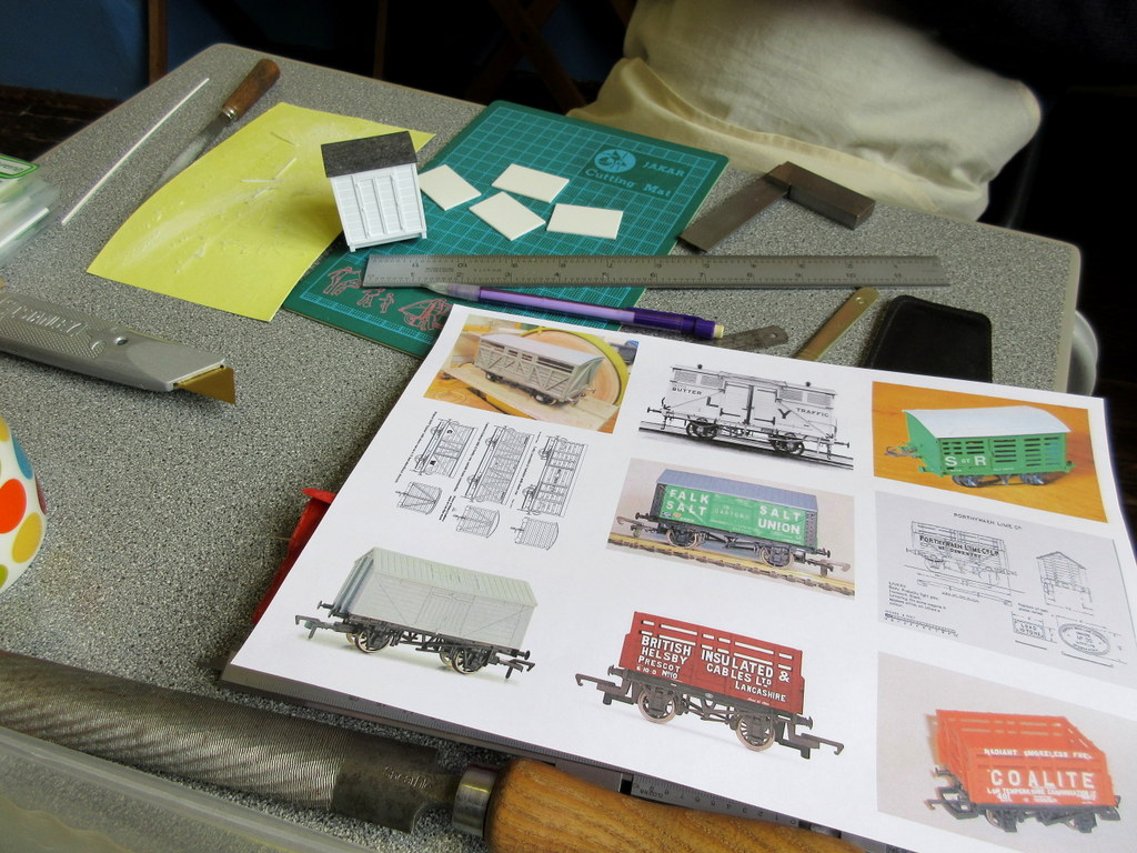 009 Society wagon kits being built by Richard Doe for his “manure train” in 009