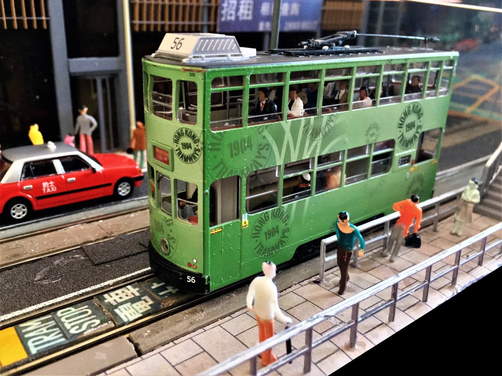 Hong Kong Trams by Dave Carson. They run on 3ft 6ins gauge, but the Bachmann HK trams he has used are produced to 1:76 (00) on 16.5mm track. This new micro-layout replaced another layout of the same name which suffered damage last year.