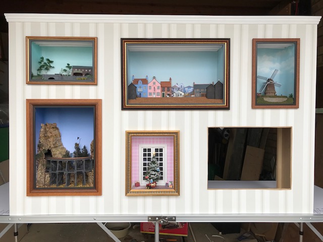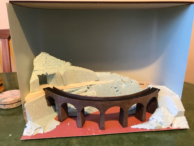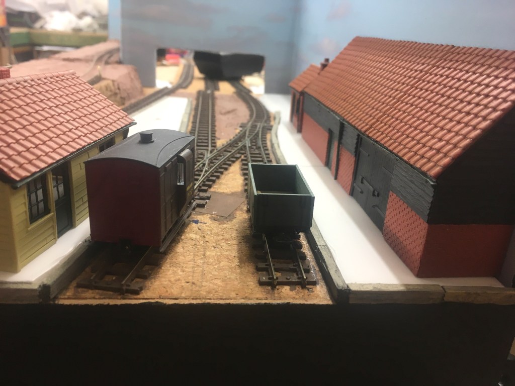 Richard’ 009 layout has had scenery work started including back scene, the track painted, ballasting, and building work under away.