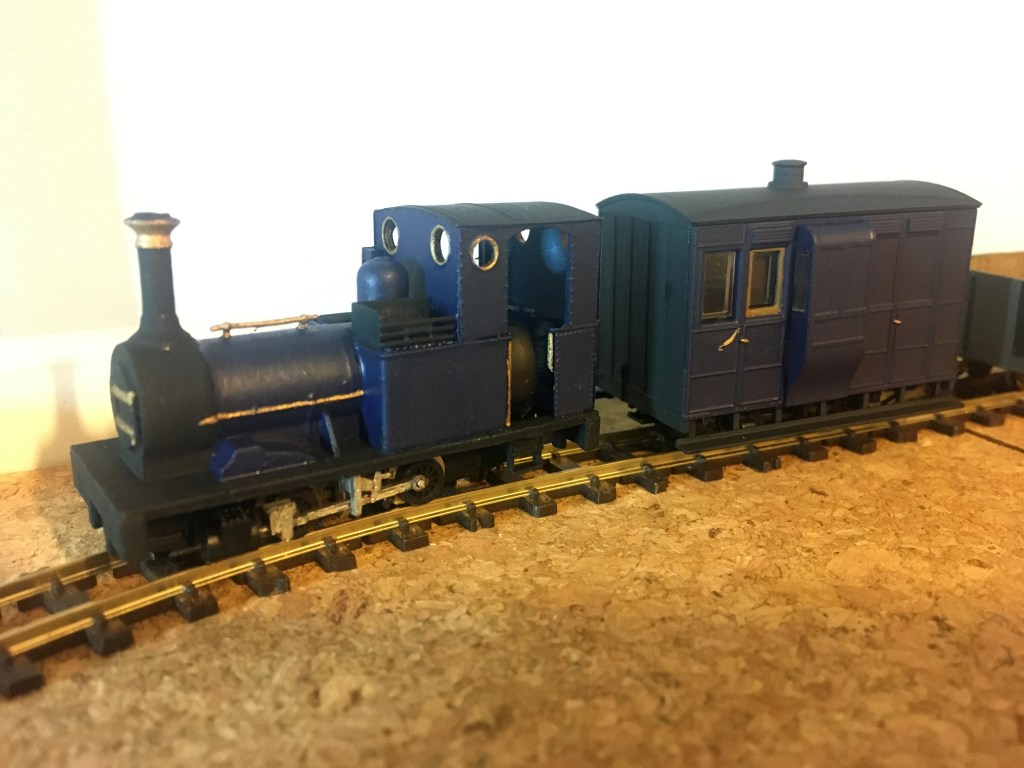 Loco and coach in new Oxford Blue livery for a new 009 layout by Richard.
