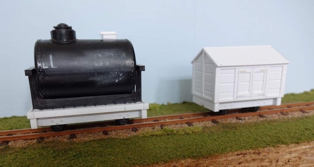 Chris has continued to scratch build some more 09 scale vans plus a tank wagon using bits of an old Triang tanker.