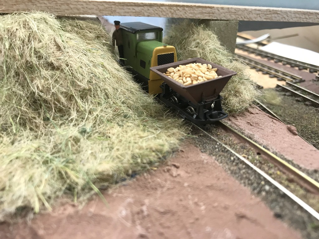 Richard has been adding scenery to his 009 layout “Staines Barn”, left: will be the entry to the station area from the Beet fields, and right: the high level working tippler.