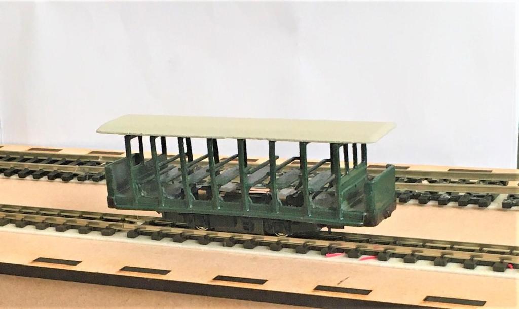 O scale building’s built by Graham for his 09 layout “Raven Hill” using resin structures by Highland Castings and Skytrex.Shapeways Southend Pier Toastrack Car in 009 by Dave for his New Walmington Pier layout. The roof will be fixed when the passengers have been glued in.Jeremy has been working on some 0-16.5 stock built all from card using Tri-ang and Hornby chassis. At the rear is a Lima 0-4-0 shunter modified with a taller cab. The micro layout is 42″ x 10″ plus a fiddle yard and will be a vegetable processing plant with a small halt.