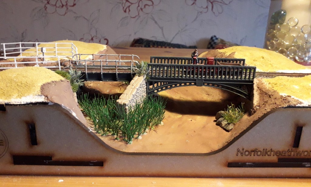 Stuart’s Norfolk Heath Works Micro Module with some of the 4mm scenics done and texturing, trees and details still to be added. The little loco on the bridge is a tiny Lister built by a previous young member of the Group.