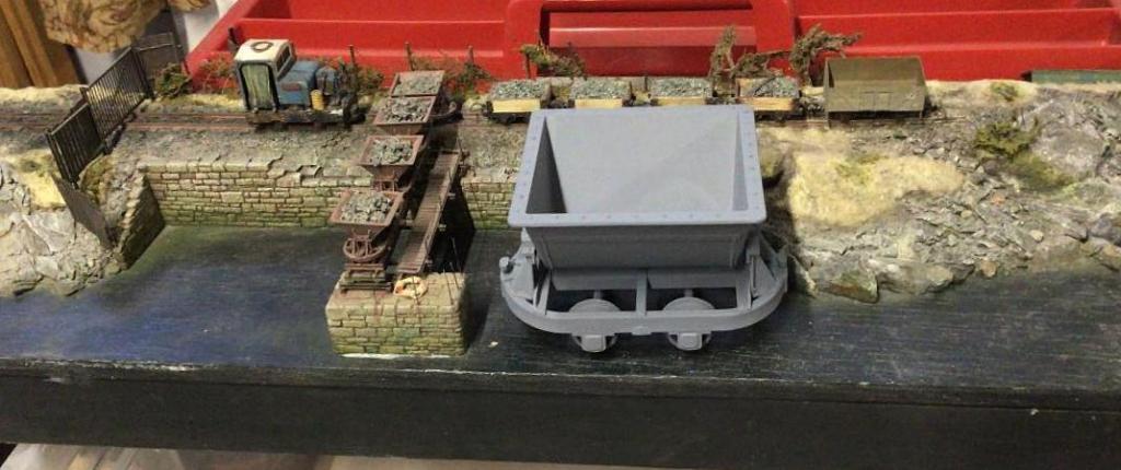New member Malcolm is taking up building of some 16mm scale narrow gauge kits, one of his Hudson skips is shown by some 4mm 009 skips made over 30 years ago, along with two more images of his 009 models.