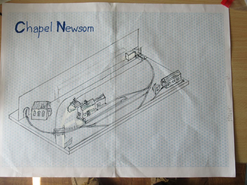 Initial plan and 6mm ply baseboard 4ft x 2ft built by David T for “Chapel Newson” (009), a fictitious Lincolnshire village scene.