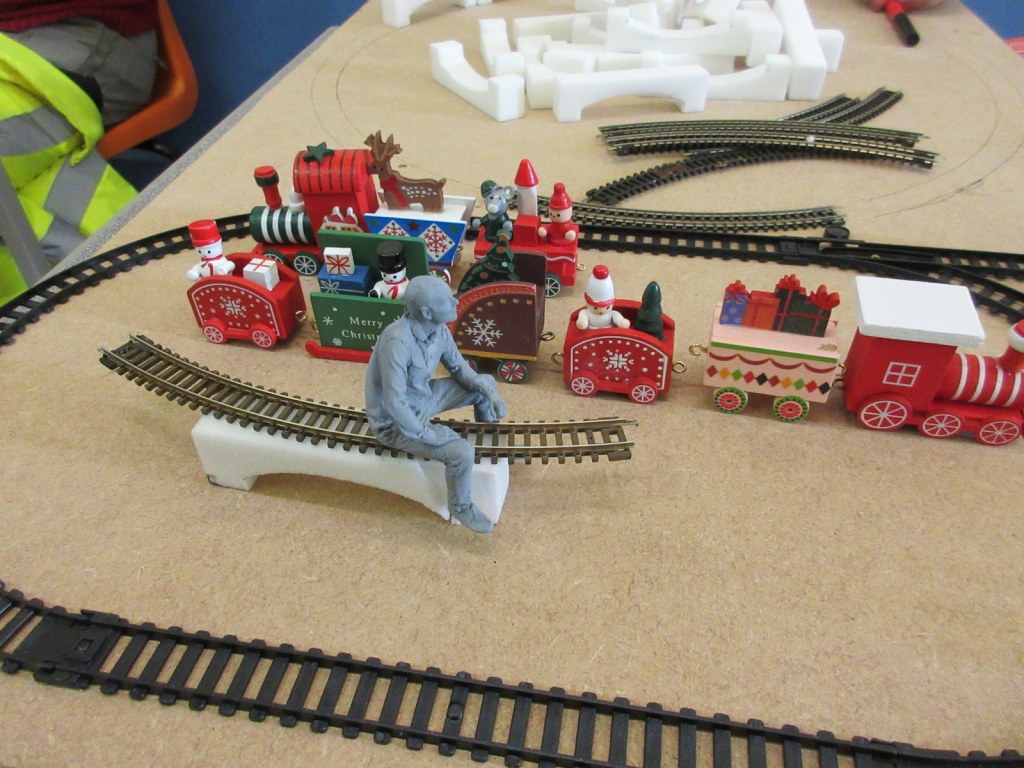 There were 13 members attend our December meeting in Barsham with a distinctly festive flavour – mince pies, cakes and Christmas novelty trains. It was nice to be able to use the village hall kitchen again after it had been renovated. Most people were working on models, but I did run and test my layout, plus a unique set of animated miniature scenes was displayed. Our next meeting will be in the afternoon only of January 8th 2022 from approx. 1pm to 4pm. Here are a few pictures from the day: