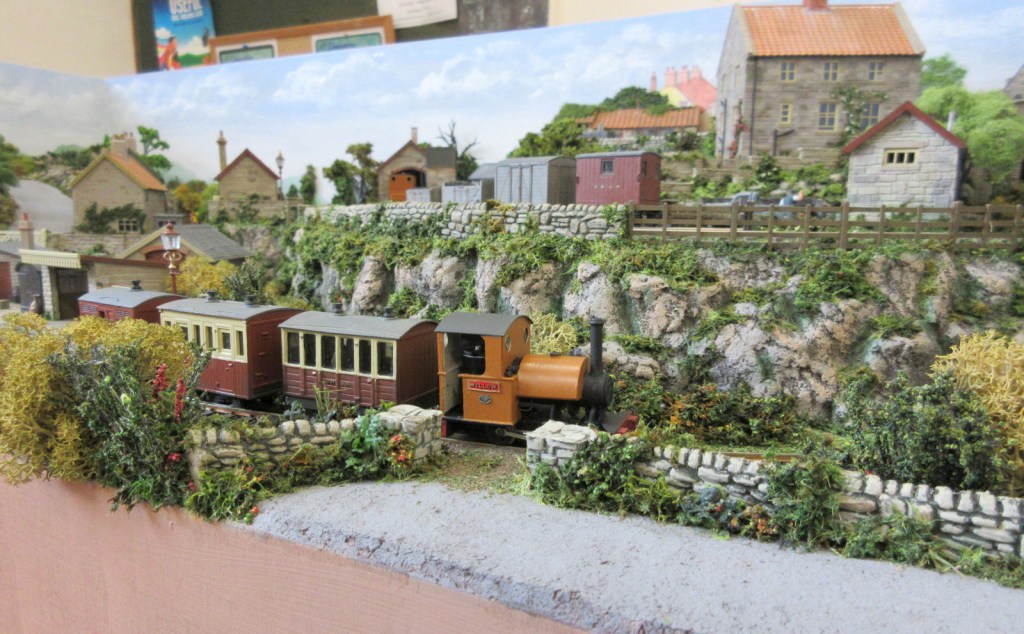 Above: Graham bought along his 009 layout “Shortwaite Hill” to test for upcoming exhibitions. Bagnall saddle tank “Willow” is seen leaving Stonegate and “Rowan” is pictured leaving the goods siding at Stonegate.