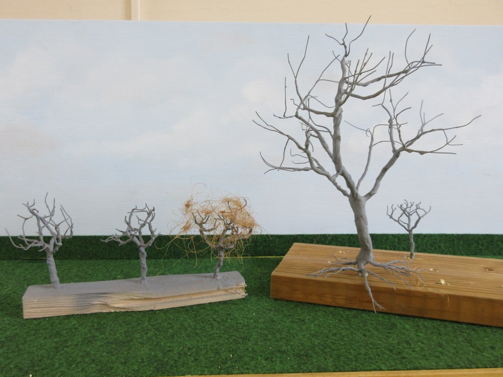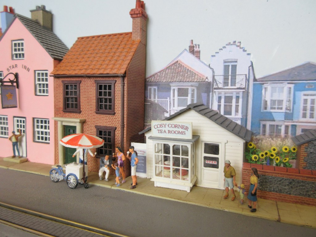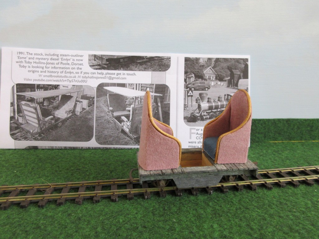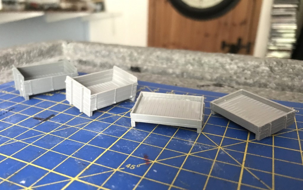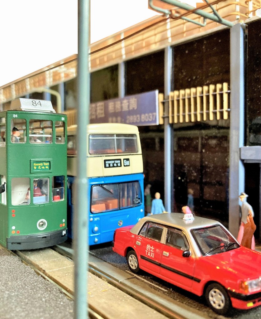 Nigel brought in two Peco O-16.5 Hunslets, and what is seemingly a production line of scratch built rare Armstrong-Whitworth Petrol tractors. Ray’s 4mm buildings are always a delight and here are two destined for a Weald shelf layout.Alan came all the way from Ely to visit us, he displayed a Gn15 scratch built model of Lister diesel “Cyril” from the Ravenglass & Eskdale Railway, and two bargain Lynton & Barnstaple bodies mounted on 2-6-4 chassis.Graham was displaying his work-in-progress, a new three sided HOe layout based on one he built for a competition 20 years ago named “Sampson Vale”.Stewart brought along his unique “Wonderwall”, a set of 6 working dioramas in a custom-made wall unit. This is part of one of the scenes named “Beside the Seaside”, in 009.Richard built some 009 Society wagon kits, two Open Planked, and two Single Plank Wagons. Two of David’s home printed 3D models for his 009/HOe coffee table layout and a working variable speed traverser for the loco works.John was working on realistic tree armatures made using 0.7mm garden wire and liquid latex.Barry displayed some O9 3D resin printed bodies by Floyd Kraemer, a Ruston & Hornsby, Simplex without and with cab, a Lister Rail Truck and Hudson side tipper wagon.Bill was scratch-building a two-seat 10.25″ gauge coach in 1:16 which will also have a roof.Two modes of transport travelling to the same destination on Dave’s Hong Kong tram layout “All Cars Stop Here”.