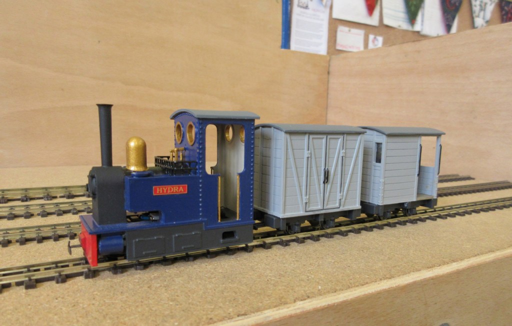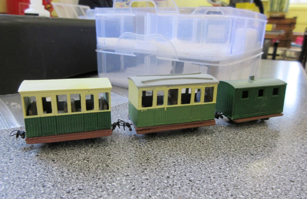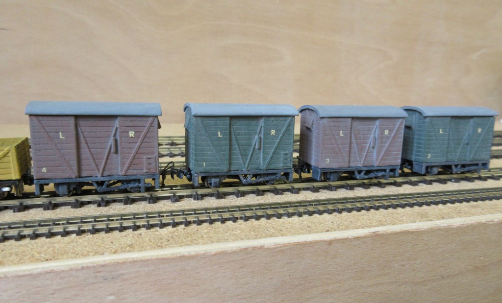 (Left) Some more of Davids own 009 3D wagon/van prints, and (right) two of Johns 4w coach 3D prints and a quarrymens coach.
