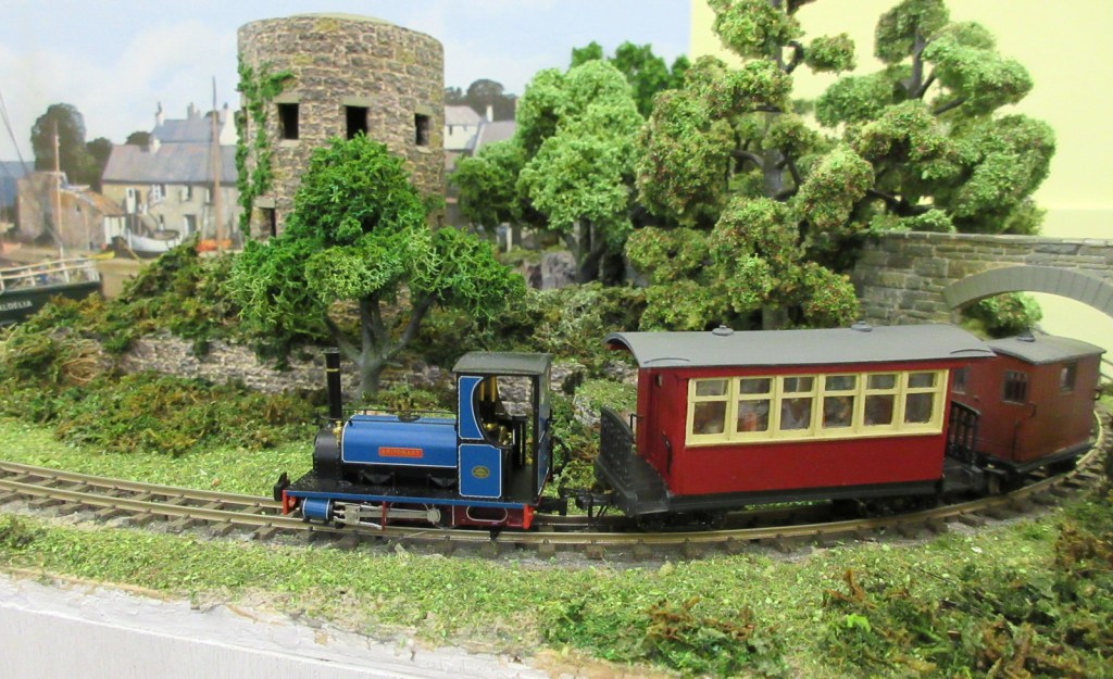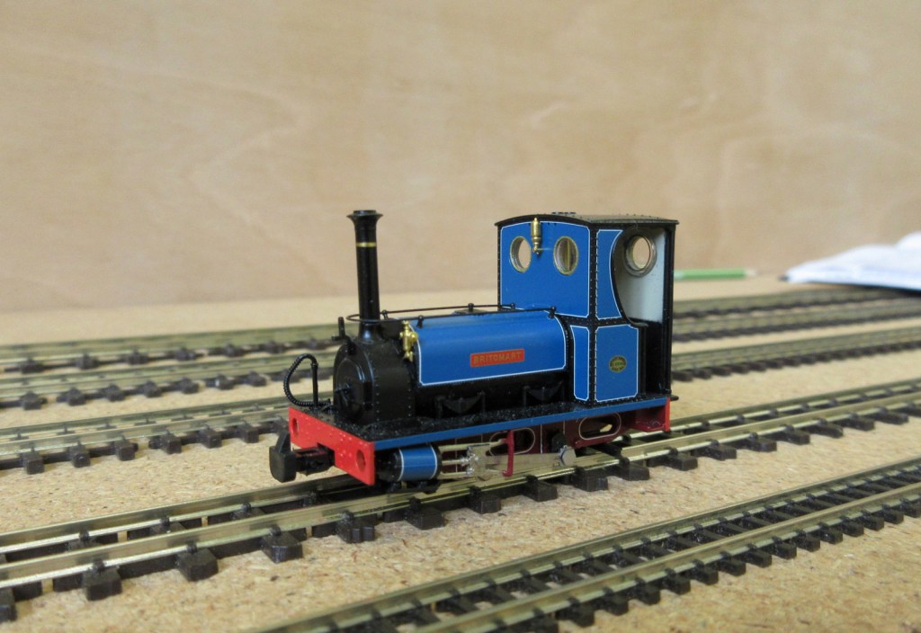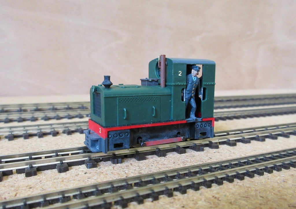 Ray was displaying some excellently-finished 009 models, a repainted and lined Bachmann “Peter Sam” Kerr Stuart, some David Church goods van 3D prints and this Minitrains Deutz OMZ 122F diesel.