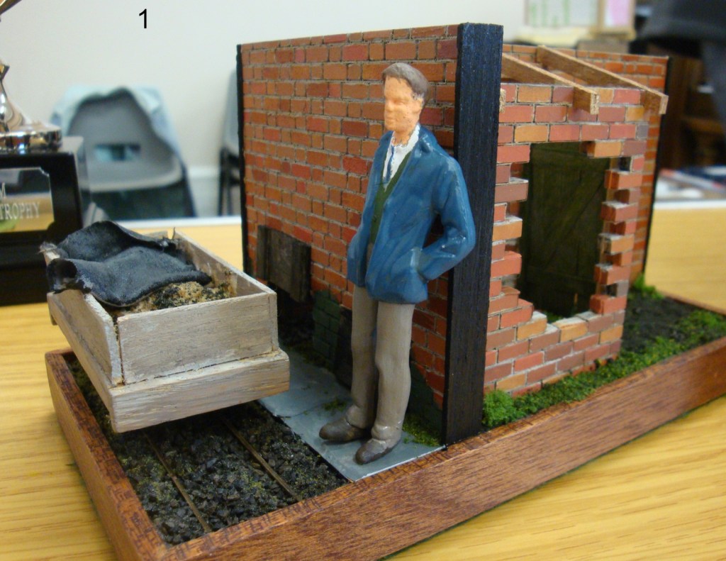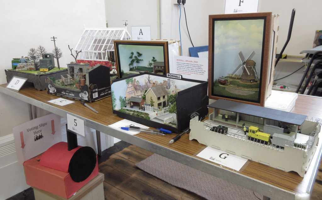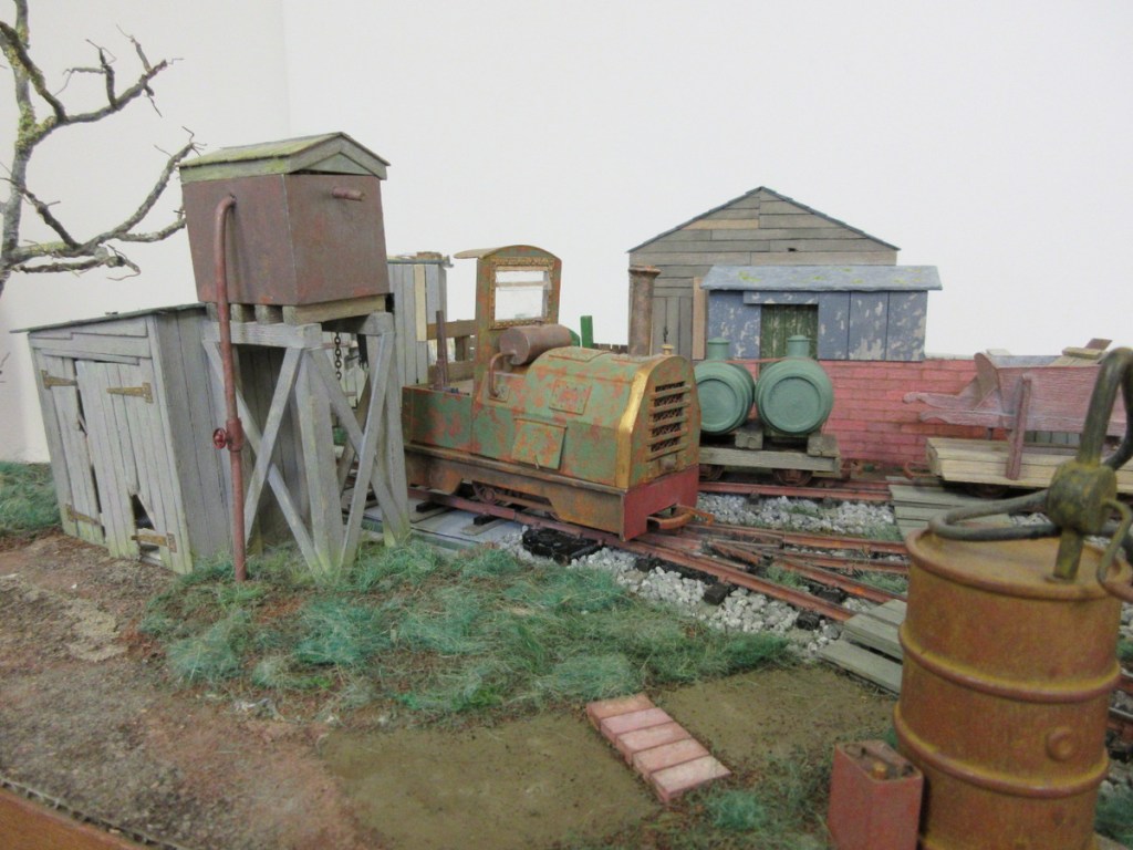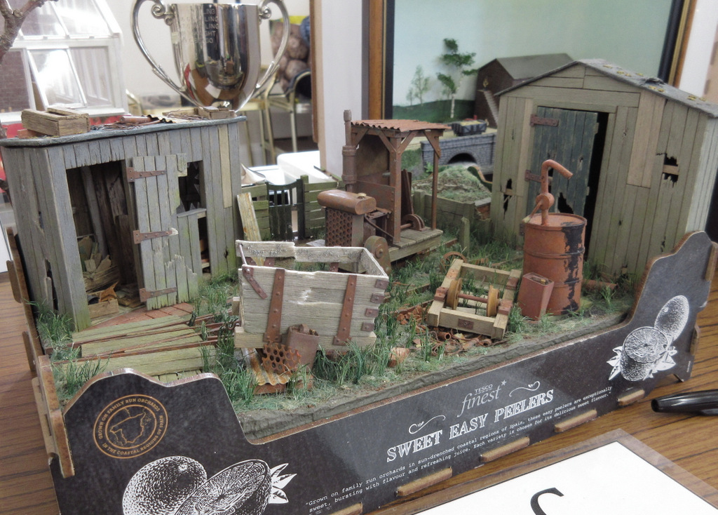 Above: The presentation table with the dioramas displayed, and Bill Knights brilliant winning entry “Narrow Gauge Graveyard” (1:24).