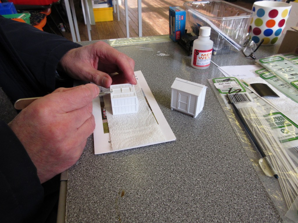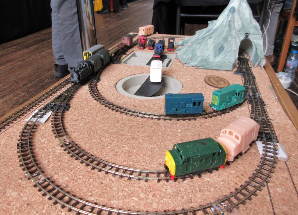 Above: Many modelling demonstrations on a regular basis at our shows has been by Alan Fuller who models 4mm card kits, 16mm mdf kits and scratch built plasticard stock. Excellent models. (If you can catch him in his chair) he is an enthusiastic and knowledgeable modeller to chat too.
