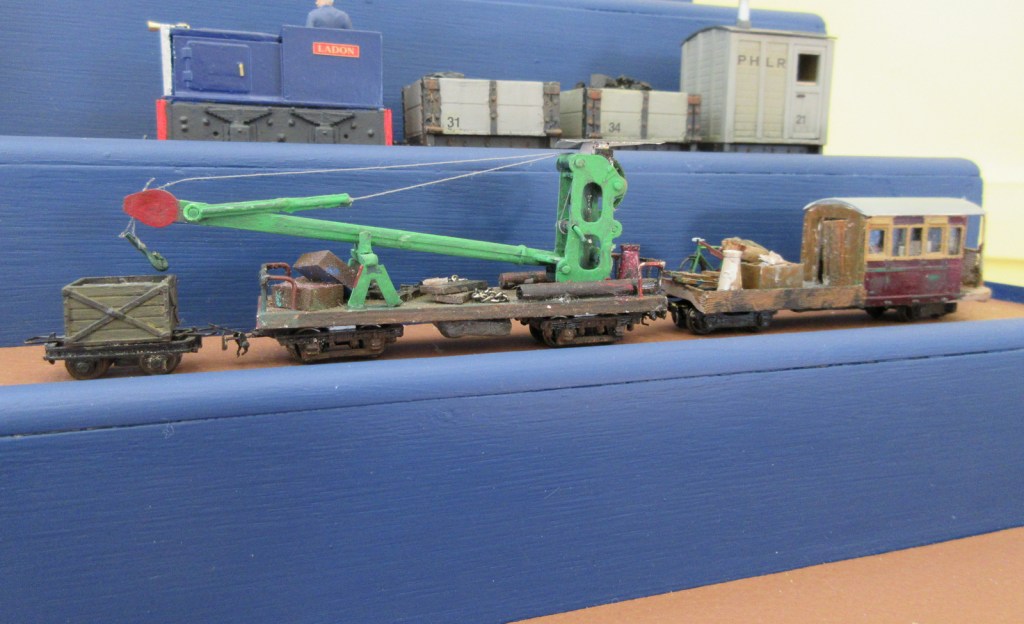 Jim brought along his 009 works train with crane wagon. The mess wagon/coach is fully fitted out internally with a kitchen.