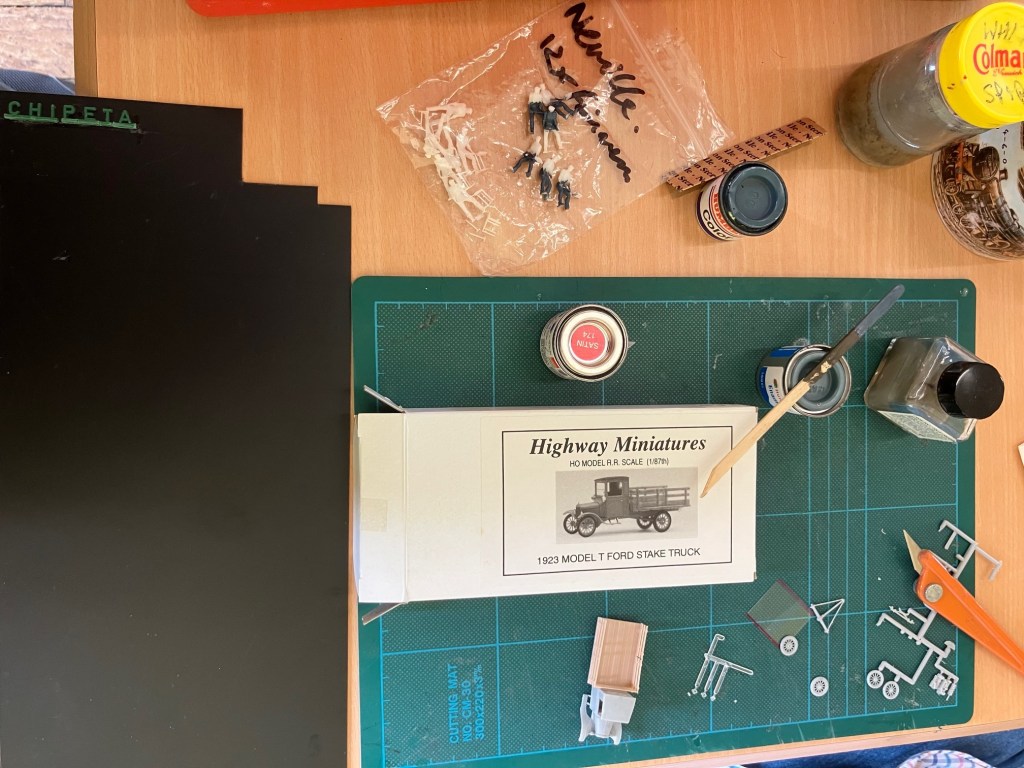 Onto a plastic backing. He started painting some Brooks 3D Models HO firemen and continued working on a Highway Miniatures 1923 Ford Model T truck.