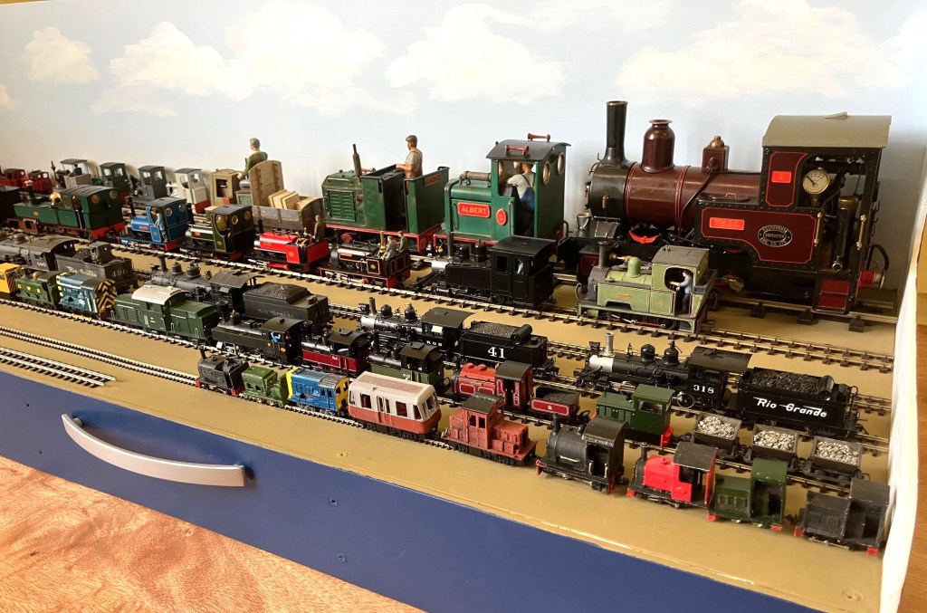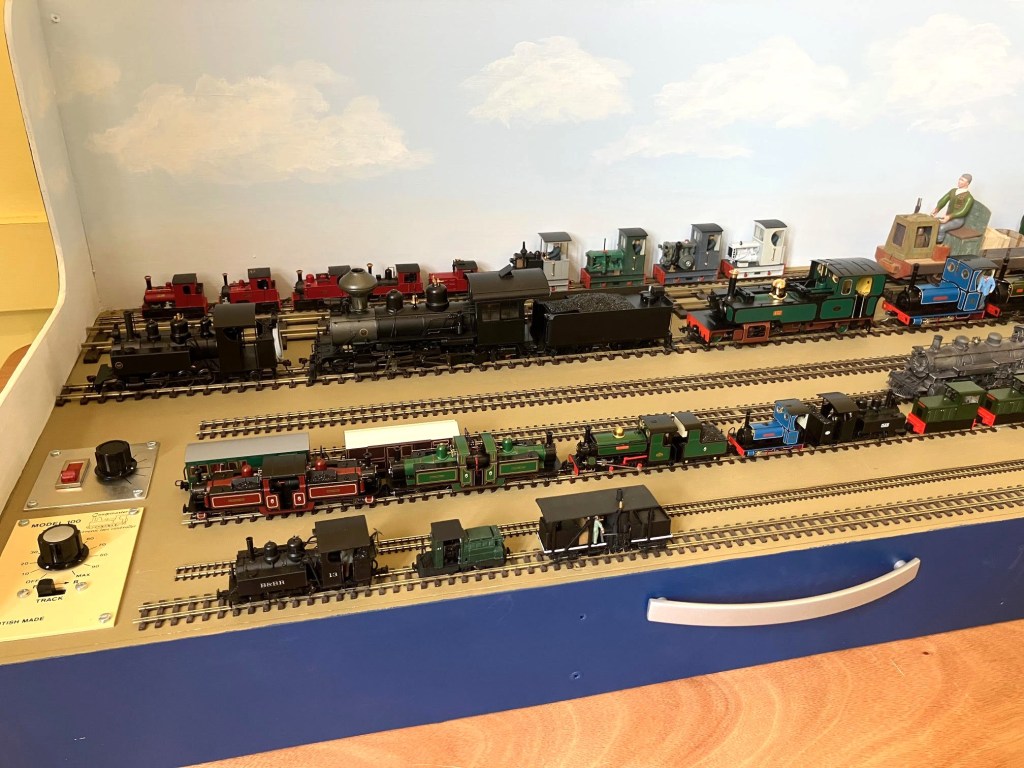 Inspired by the Ffestiniog 200 Wheels on the Cob event we loaded our test track board with locos & tenders and managed to display up to 324 wheels using many scales within the Group. Three photos below: