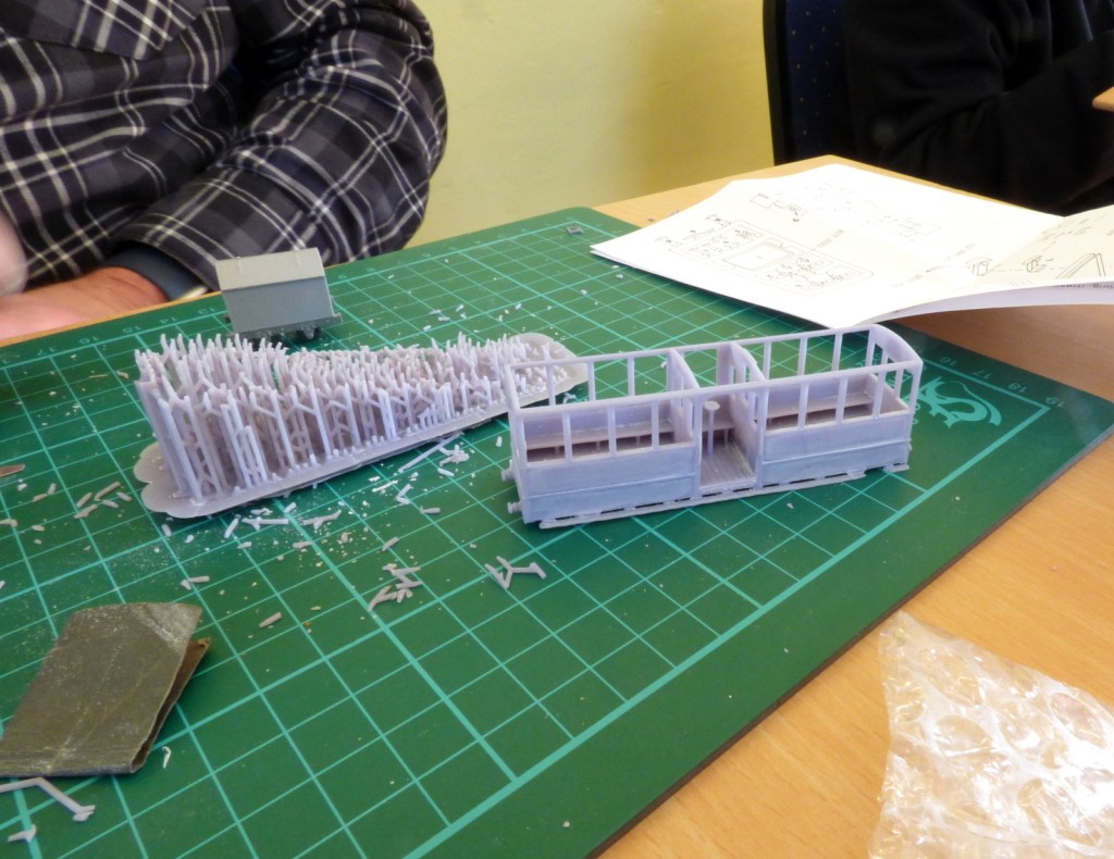 A Ruston 009 3D print and a Glyn Valley tram kit displayed by George.