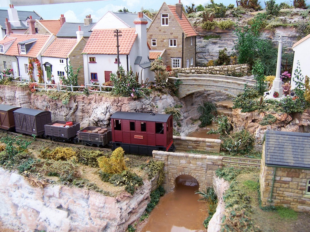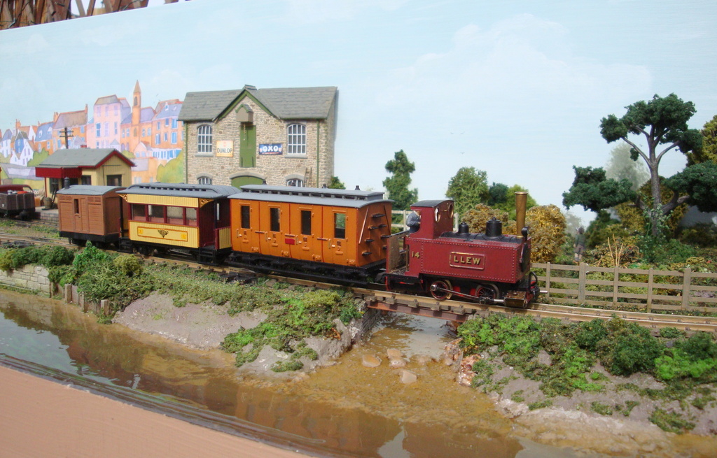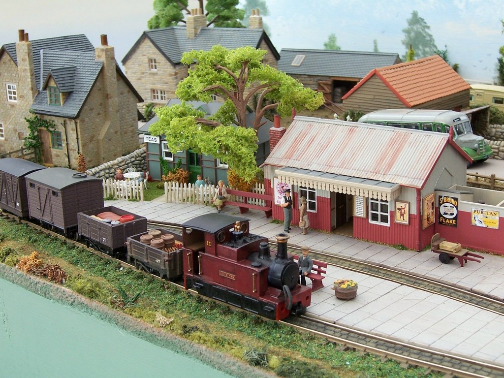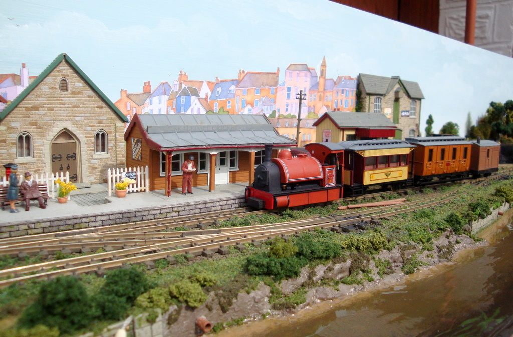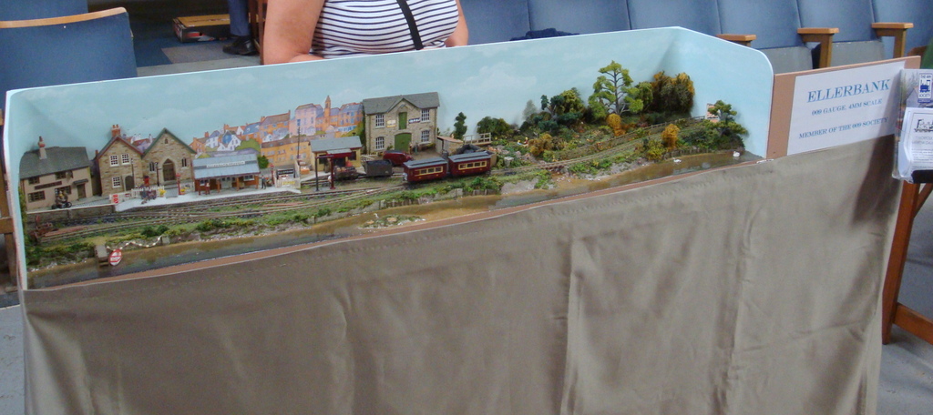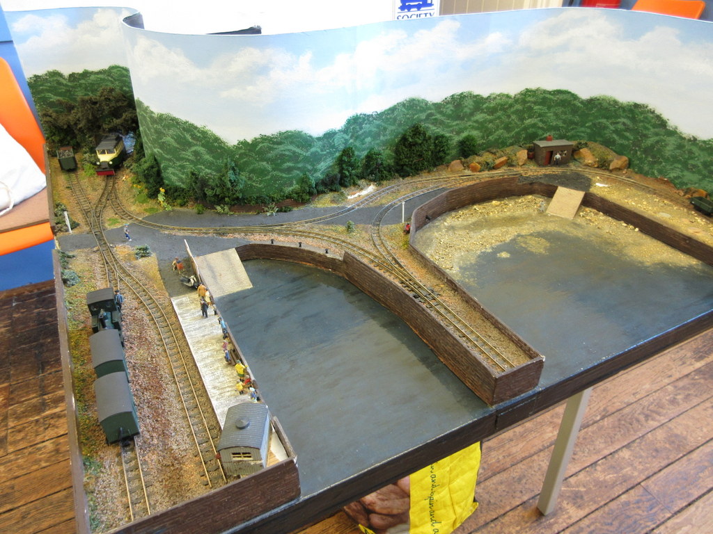 Southwold – 00n3 (4mm scale 12mm gauge). Stewart Green’s excellent Post World War 1 model of Southwold Station. Famous for it’s “Cleminson” 6-wheeled chassis and it’s quirky nature the model features all the flavour of the station area and the approach from the cutting.Oh Guano – 0-16.5 (7mm scale). A Queensland, Australia set model of a facility to process bat droppings (Guano) built by Noel Davies. It is mainly used for fertiliser and also supplied to gunpowder manufacturers.Orne – 009 (4mm scale, 9mm gauge). Chris Ford displayed his Mid-Sussex scene of a railway that has just managed to survive the war. It was built on a redundant baseboard.Llanfair Jamieinion – 009 (4mm scale, 9mm gauge). Built for his son Jamie to operate, Graham Doe has constructed a layout with a continuous run, the tack plan being inspired by the W&LLR western terminus. A small fiddle yard has now been added for more operational variety.Ashurst Brickworks – 009 (4mm scale, 9mm gauge). A fictitious layout by Peter Rednall based alongside a narrow estuary on the Sussex coast where good brick-making clays have been found. Now based in the 1950’s, a passenger service continues to run.Character of the day “Maisie”, and (right) Myra Davies Painting Demonstration detailing 7mm scale figures and accessories.Mirkwood – 009 (4mm scale, 9mm gauge). A lovely model of a small Welsh slate quarry and nearby village by Tony Clarke.Photo: R. DoeCaroline Concrete Works – 0-16.5 7mm scale. A concrete works loosely based on the Tallington works near Stamford. Various structures are made, including sleepers. Materials are moved within the works by the narrow gauge and finished products to a standard gauge siding. Built by Graham Morfoot.Photo: R. Doe4000 Yards Area 5 – SM32 16mm scale, 32mm gauge. Kelvin Barnes super-detailed WW1 scene based on behind the lines railways set in France between 1916 and 1918.Challenge Trophy presentation. Photo. R. DoeThe Group Challenge table, and Bill Knight receiving the Challenge Trophy from 009 Society Chairman Julian Evison. More photos of entries below.Photo: R. DoeThe Brick Works – 0-14 7mm scale, 14mm gauge. An industrial layout built by Stephen Thomson and now owned and exhibited by Barry Weston, Ruston locos move clay into the works through a realistic scene.Photo: R. DoeMaentwrog – 009 4mm scale, 9mm gauge – Using Ffestiniog Railway stock, Peter Webb has created this lovely welsh layout over several years. Originally built to 8mm gauge, it was modified to 9mm when 009 items appeared on the market. First public showing.Shortwaite Hill – 009 4mm scale, 9mm gauge. Graham & Caroline Watling’s fictitious, North Yorkshire inspired layout. Features a lower and upper station, scratch built buildings and hill scenery.Old Chapel Yard – 009 4mm scale, 9mm gauge. A repair and maintenance yard set on the edge of a rural town by Jim Bamber. Jim is still adding stock and details on the layout.Photo: R. DoeFishie Fishie – SM32 16mm scale, 32mm gauge. Work is well in progress now on this large scale shunting puzzle layout by Alan Fuller. A narrow gauge line serves the fishing industry drawing inspiration form Aldeburgh and Hastings beaches.