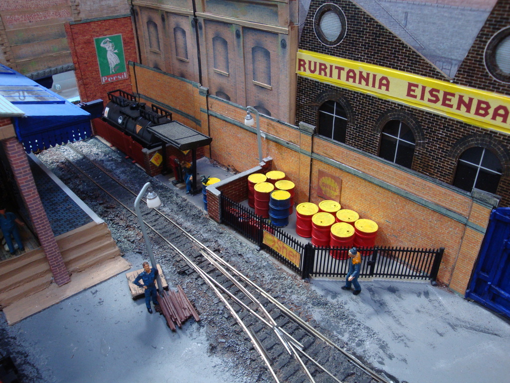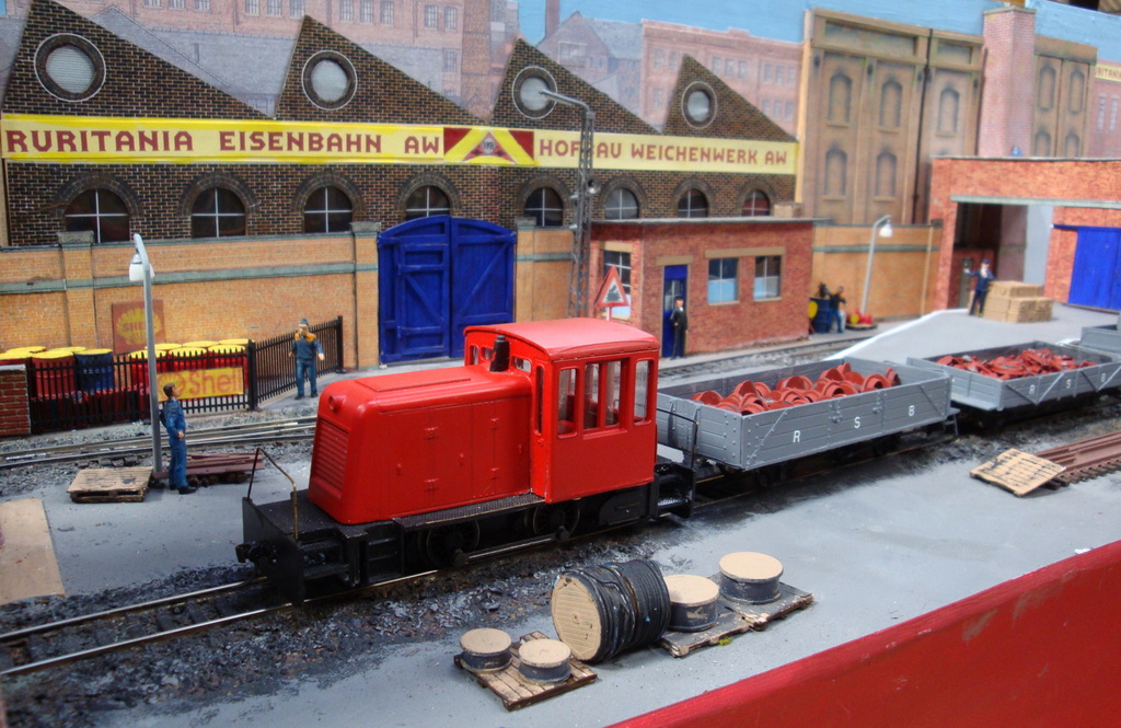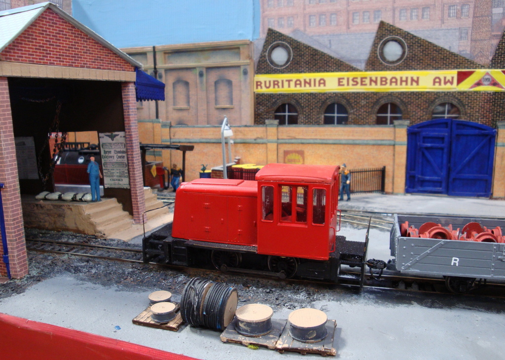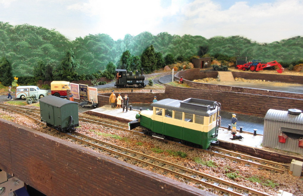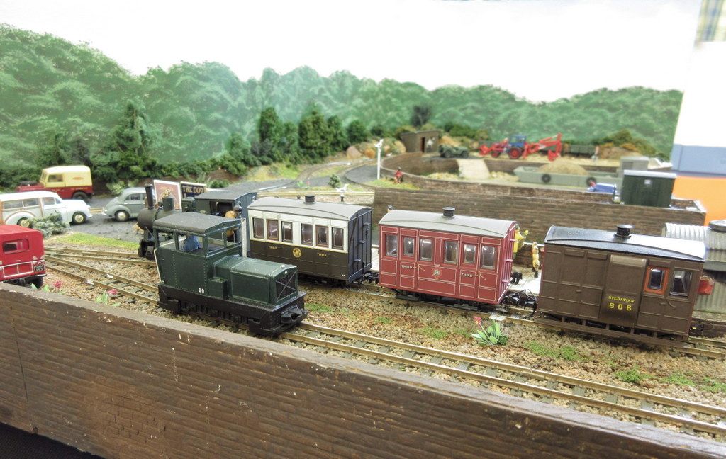 Baldwin’s at “Llanfair Jamieinion” (009) by Graham & Jamie Doe.Bill Knight’s 1:16 scratch built shunting puzzle “Little Ease” and display of materials in construction.“Staines Barn” by Richard Doe (009) a micro layout receiving it’s first public showing. Based on a unique sugar beet line in Norfolk.Barry Weston was running the late James Corsi’s O-16.5 scale “Ruritania Eisenbahn” layout.Another layout having it’s first public display was “Raven Hill” (O9) by Graham & Caroline Watling, inspired by the North York Moors.“Ashfield Green” (009) by Chris Seago.“New Walmington Pier” (009) by Dave Carson.Malcolm Cudmore was displaying his 16mm remote control Simplex and also painting figures as a demonstration.