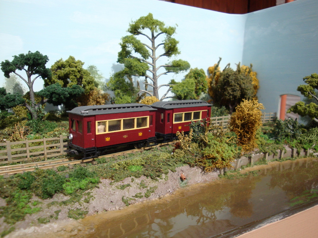 Jim Bamber was displaying his 009 layout “Hubbards Halt”, here are two of his loco’s, a vertical boiler tram loco and coach and a Beyer-Garratt scratch build.