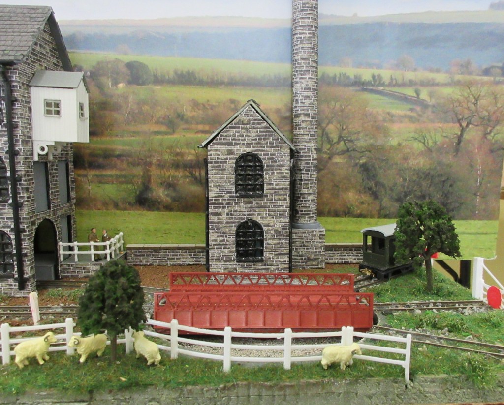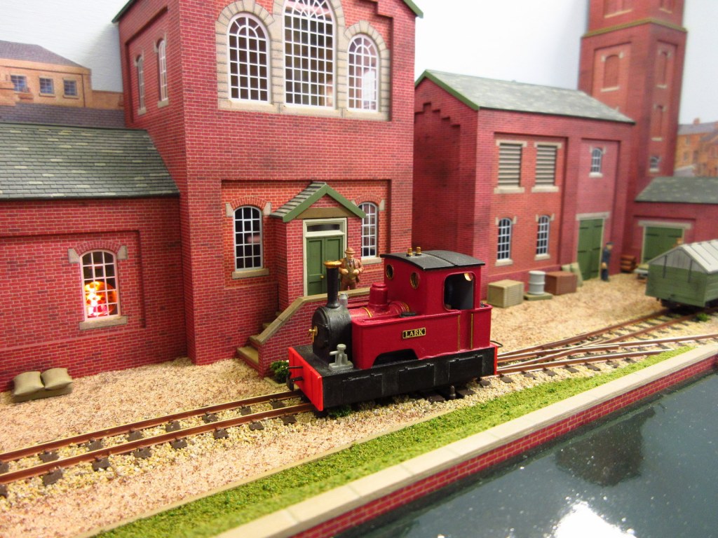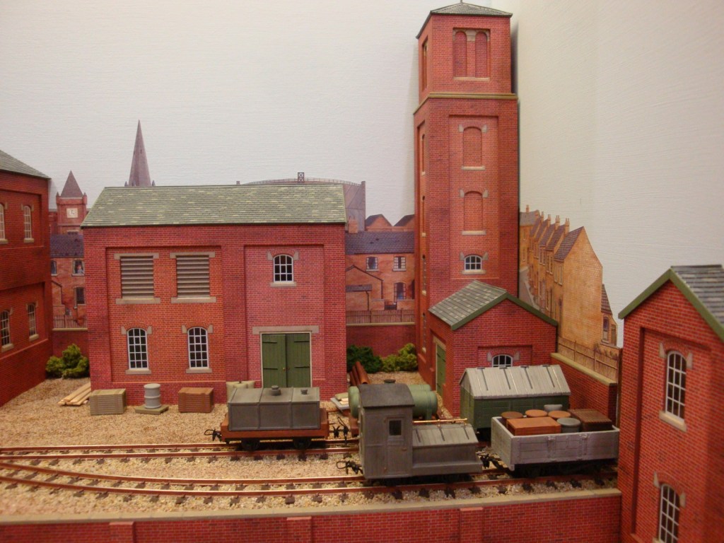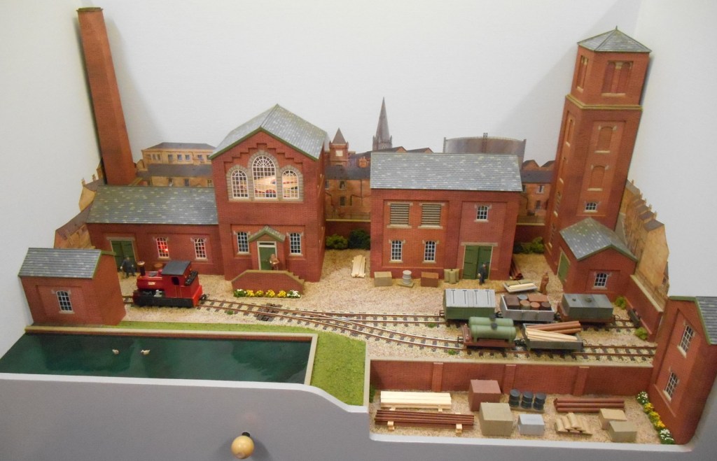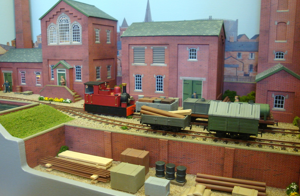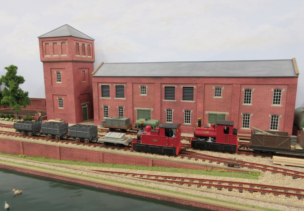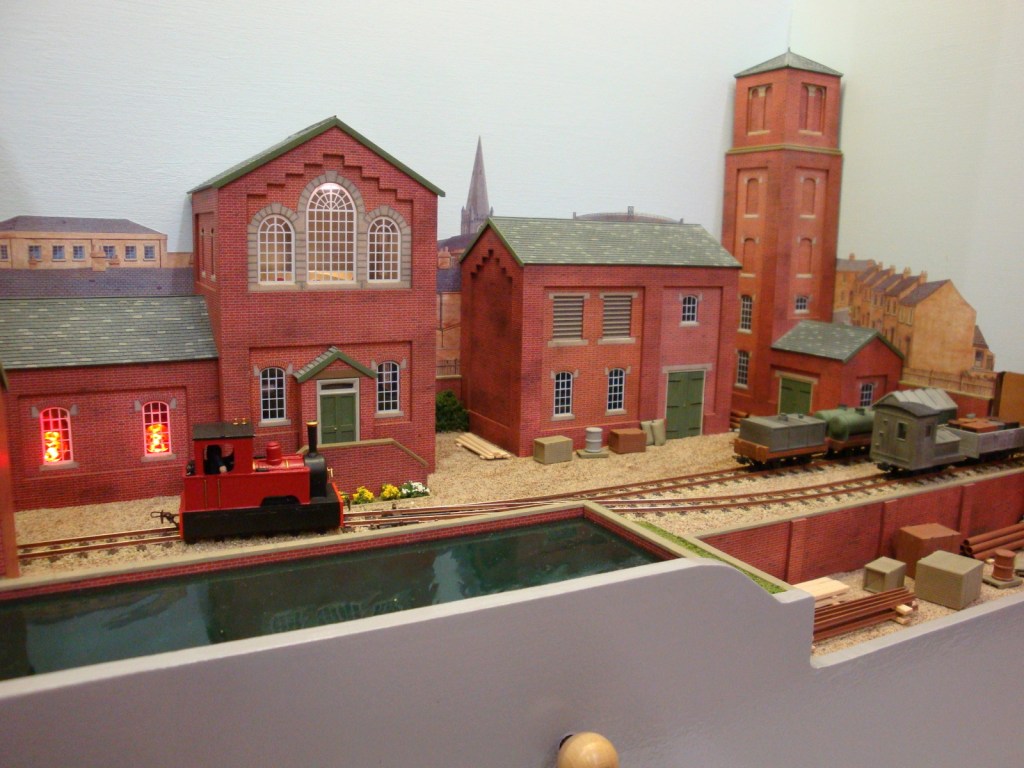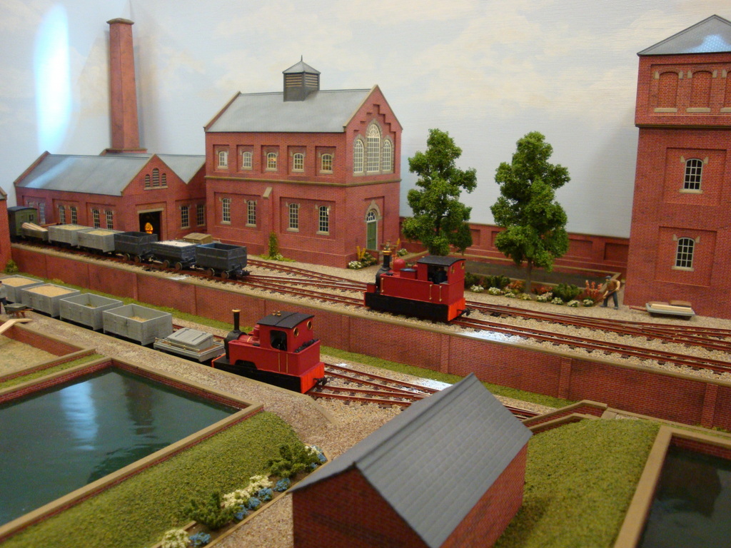 The layout depicts a busy corner of a Victorian waterworks where the railway serves the pumping engines, workshops and water treatment works. The beam engines can be seen working in the engine house and there are coal fires in the boiler house. It was originally built for the Expo Narrow Gauge 2016 Challenge – to build a working layout using just one point and three lengths of track in an area of 50cm x 25cm. It is operated as a “shunting puzzle” with stock selected by cards.