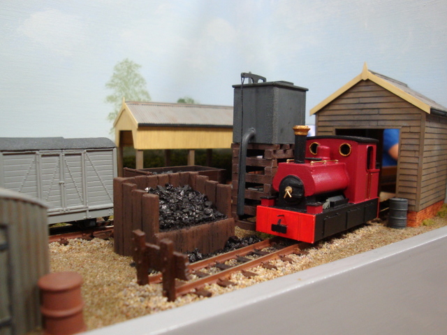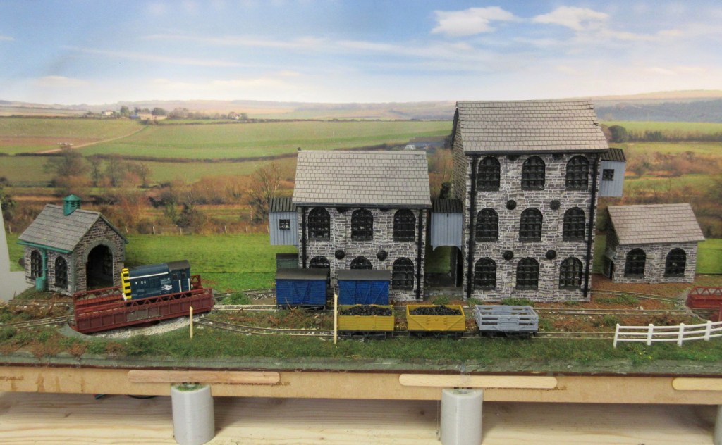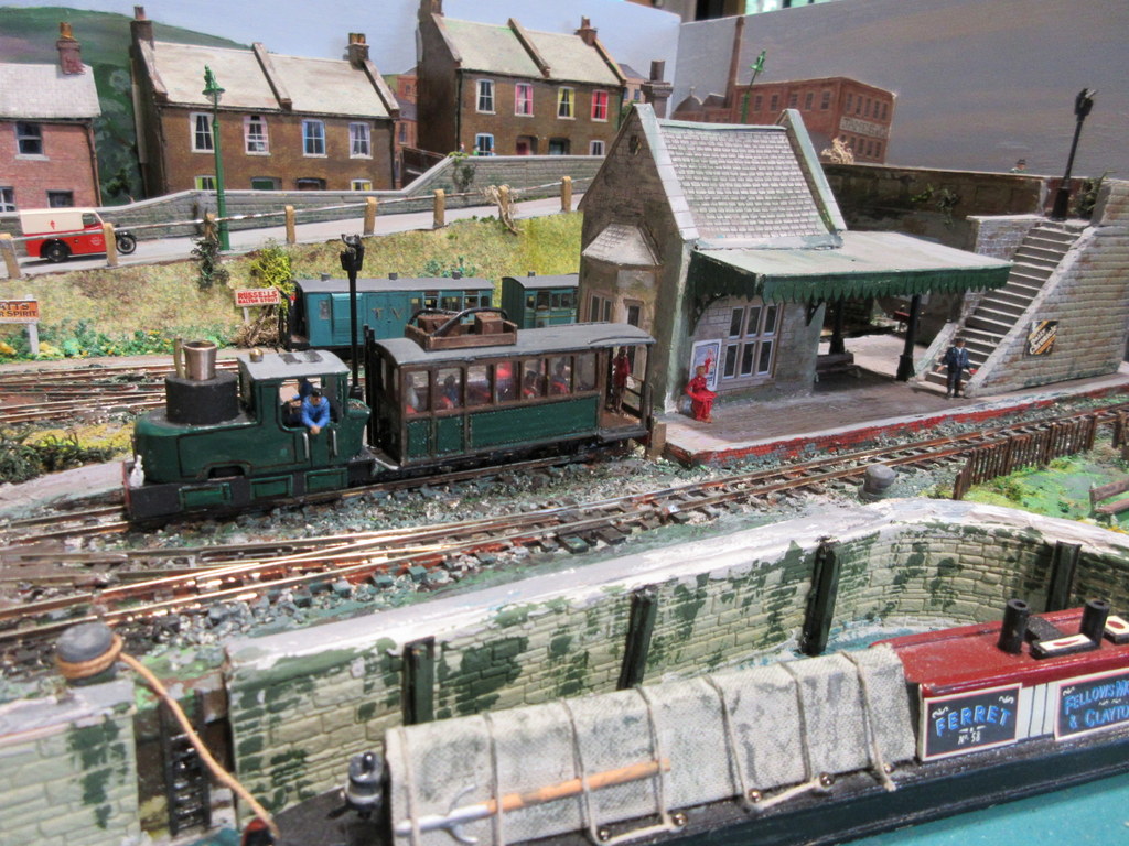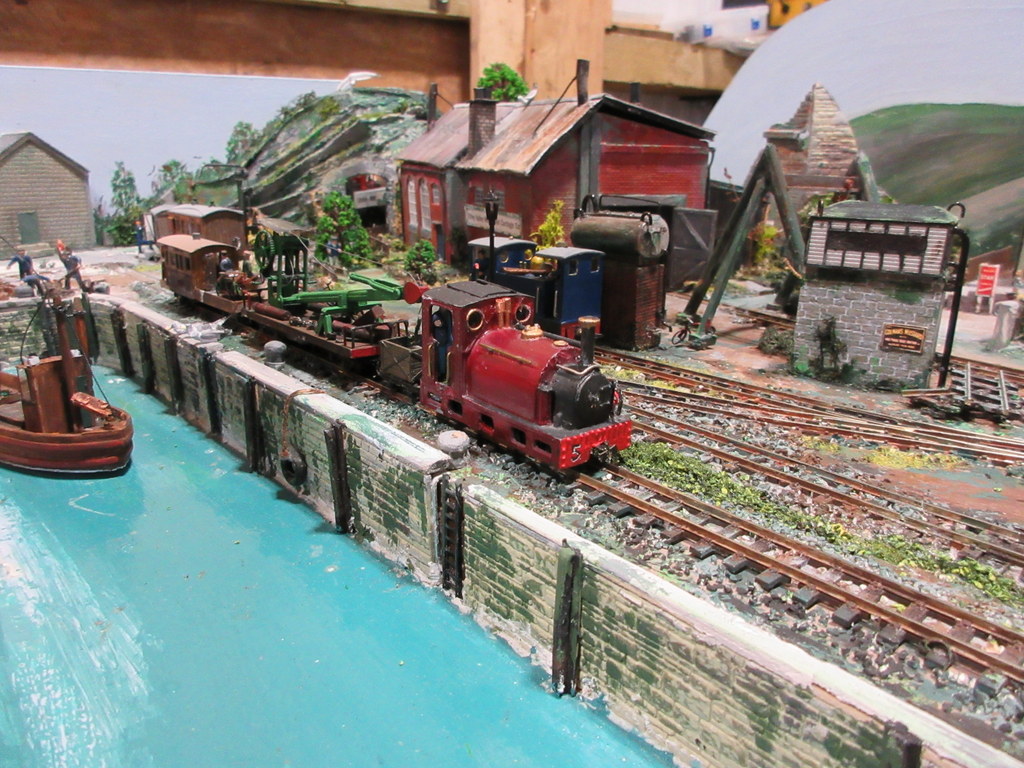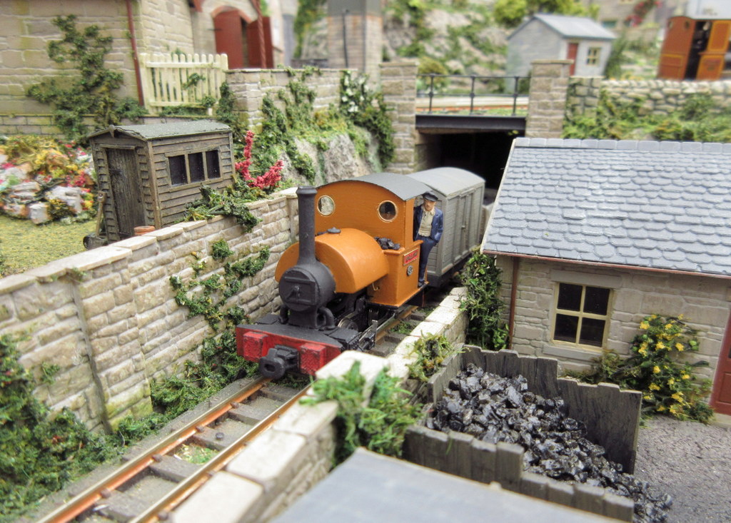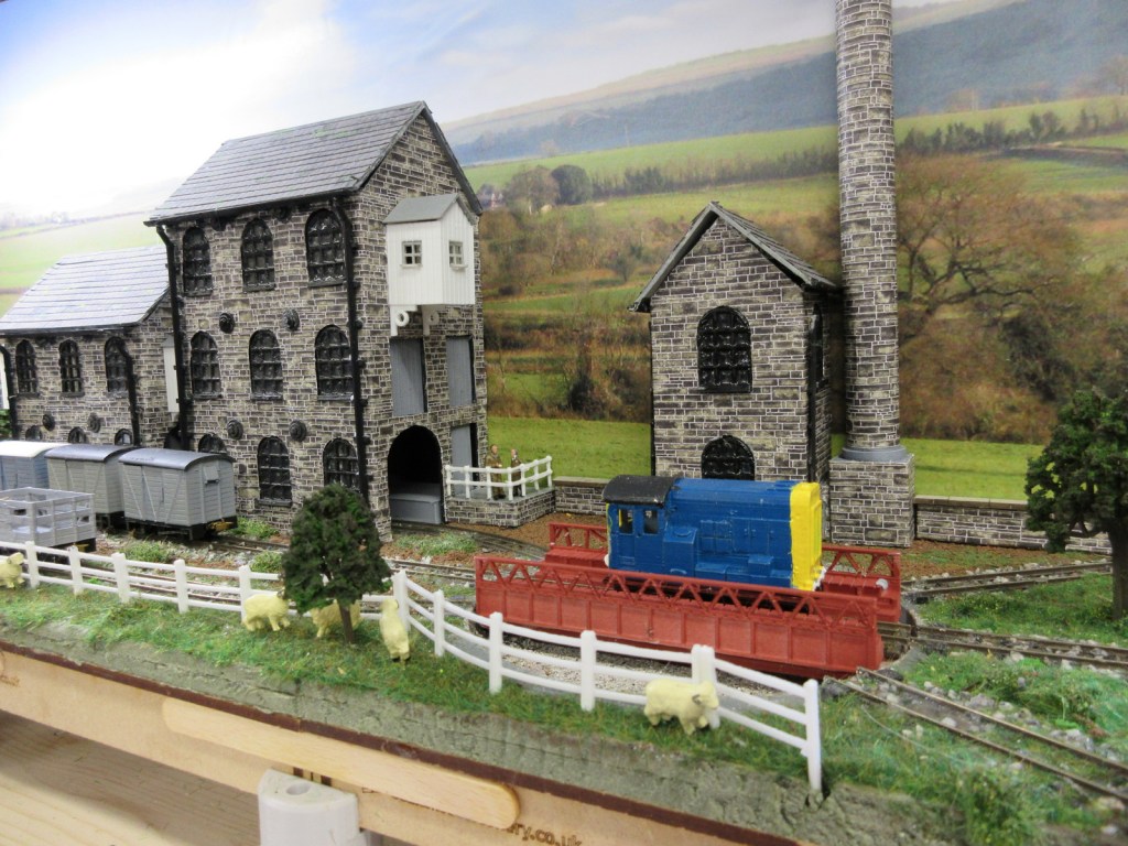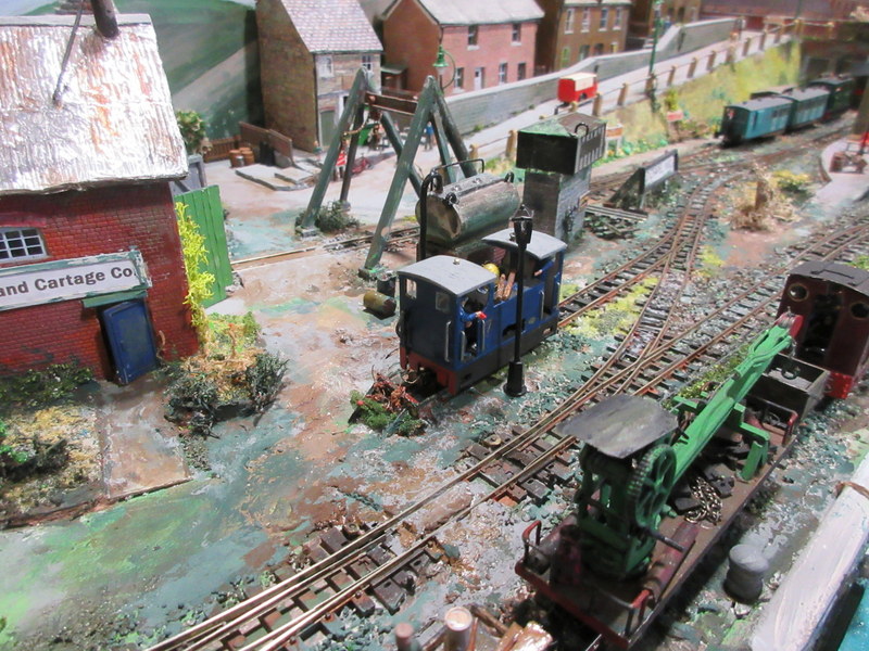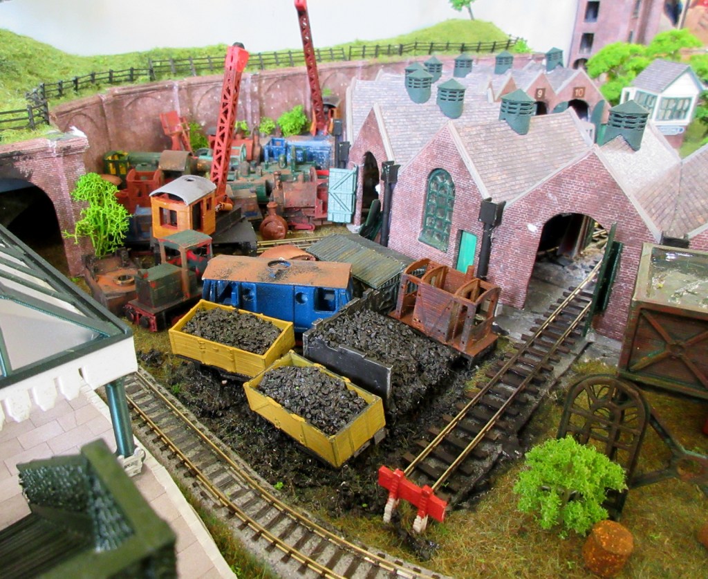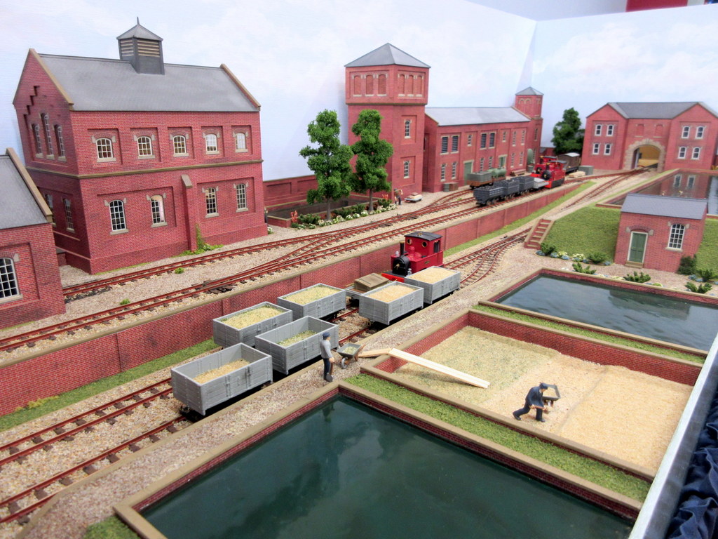 The layout depicts a busy corner of a Victorian waterworks where the railway serves the pumping engines, workshops and water treatment works. The beam engines can be seen working in the engine house and there are coal fires in the boiler house. It was originally built for the Expo Narrow Gauge 2016 Challenge – to build a working layout using just one point and three lengths of track in an area of 50cm x 25cm. It is operated as a “shunting puzzle” with stock selected by cards.