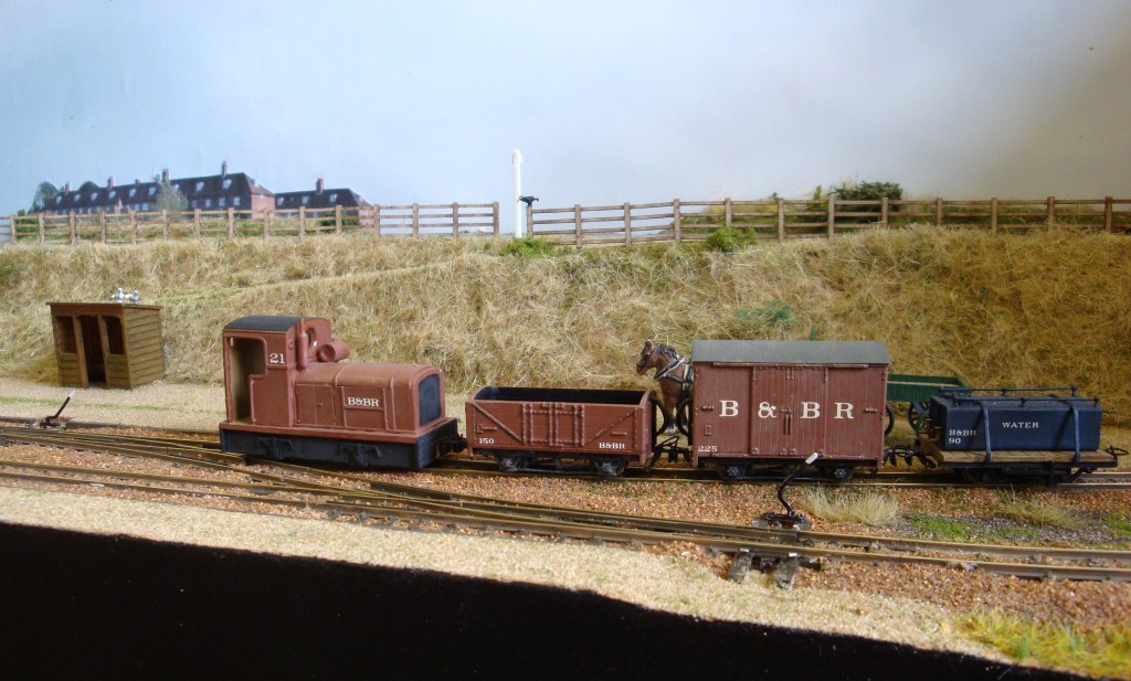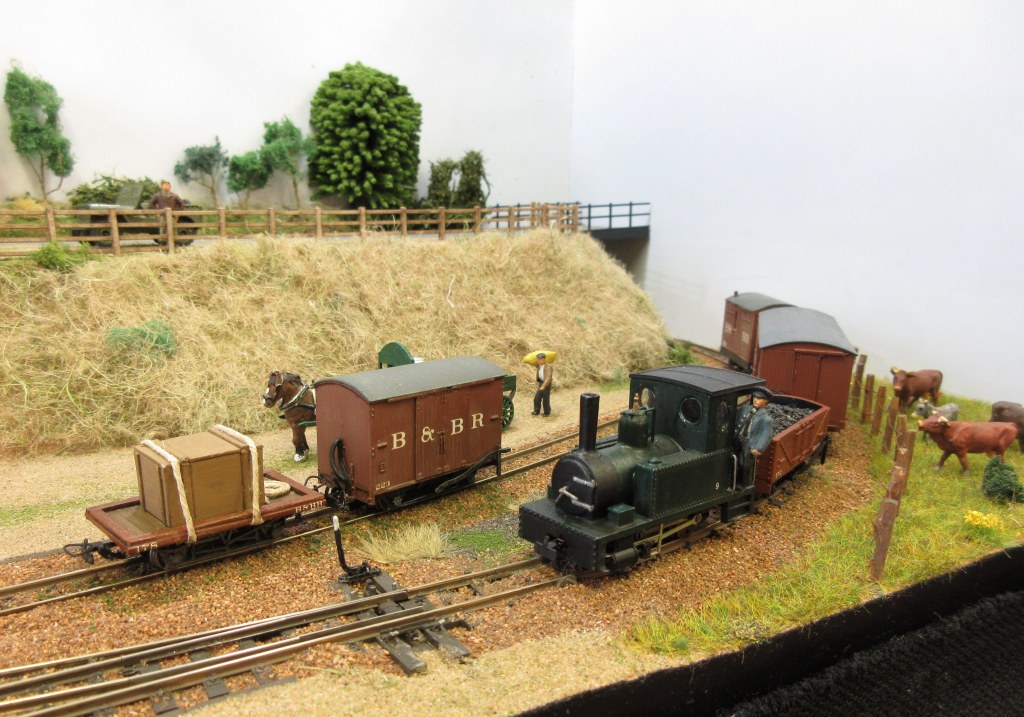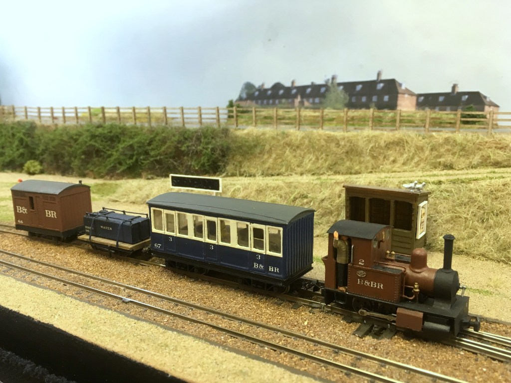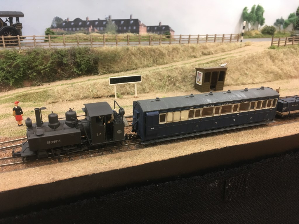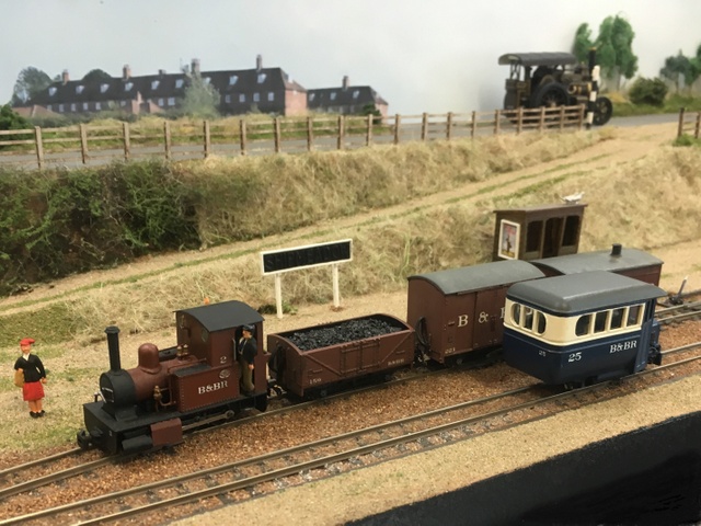 Just to the east of Halesworth was once a Southwold Railway engine shed near Bird’s Folly, it was made quite flimsily with wood and asbestos and usually the Manning Wardle No.4 “Wenhaston” was stored there. This layout is just under 5ft x 3ft and features the engine shed (made from plastic sheet), the gravel pit, Bridge No.2 and an image of Folly House nearby. There are SR locomotives made from Golden Arrow kits of No.4 “Wenhaston” running on a Minitrix 2-6-2, Sharp Stewart No.2 “Halesworth” and No.1 “Southwold” these run on MicroAce 2-4-0 chassis. Due to the layouts small size, usually one coach is run with a selection of wagons and vans of wagons and vans including of course six-wheeled Cleminson vehicles.